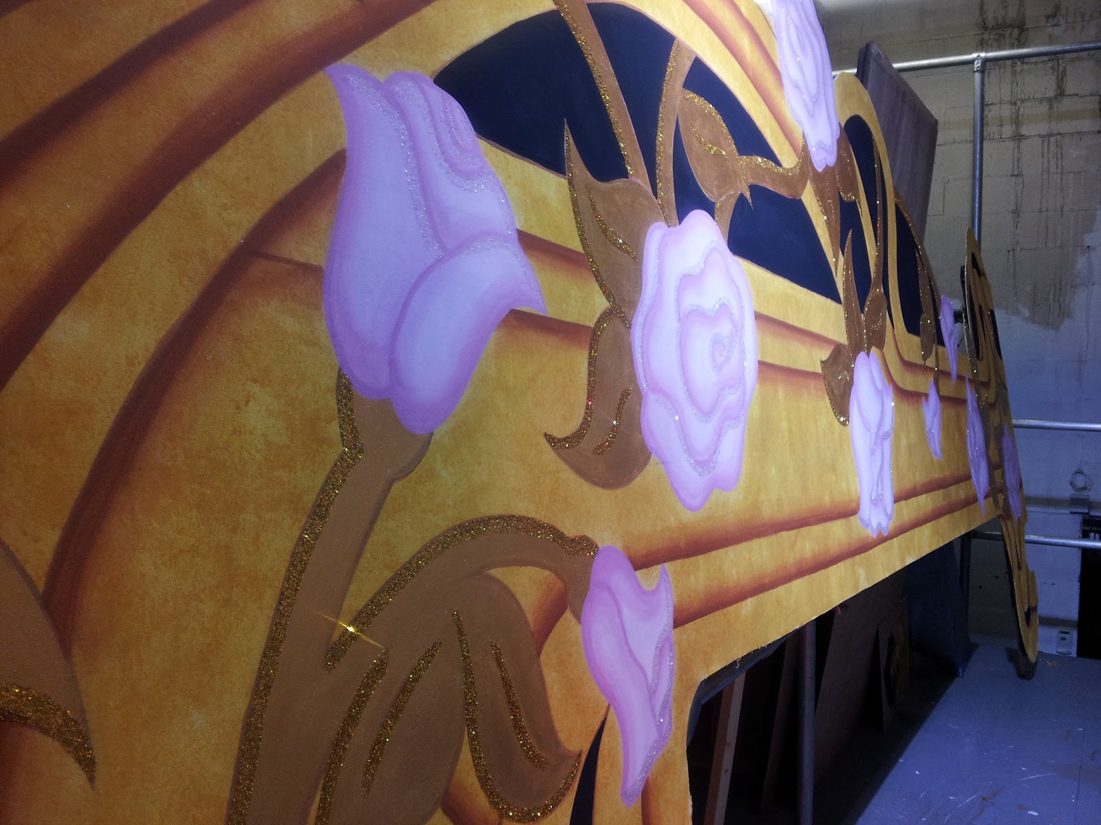 This term...oh sorry semester has just flown by! Panto was looking lovely and the floor was down and all the pieces of set were taken away to get fitted upi. We had a few last minuted bits and bobs to work on but it was a bit of a slow week. After my week with Irwin I managed to persuade uni to give me another week off to help her on her second show, sleeping beauty. The set for that show was even more beautiful than the previous one id worked on. It was the final week of painting before the show got fitted up in the theatre so it was a pretty full on week and there was never a moment of not doing anything. I was working on some gargoyles for the top of the organ and some candelabras which were covered in glitter! And I also helped Irwin paint the pros for the front of the stage. Im really looking forward to seeing it, gutted I couldn't make the dress as it was on at the same time as our panto dress.